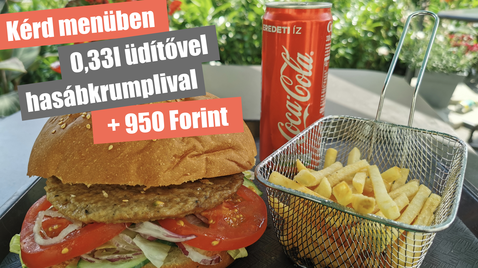0,33l üdítővel és hasábkrumplival + 950 Ft